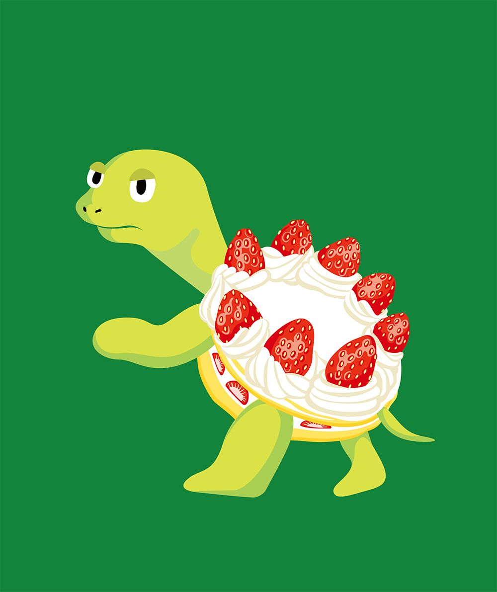 ケーキを背負っているカメは幼少期からずっと描いています。