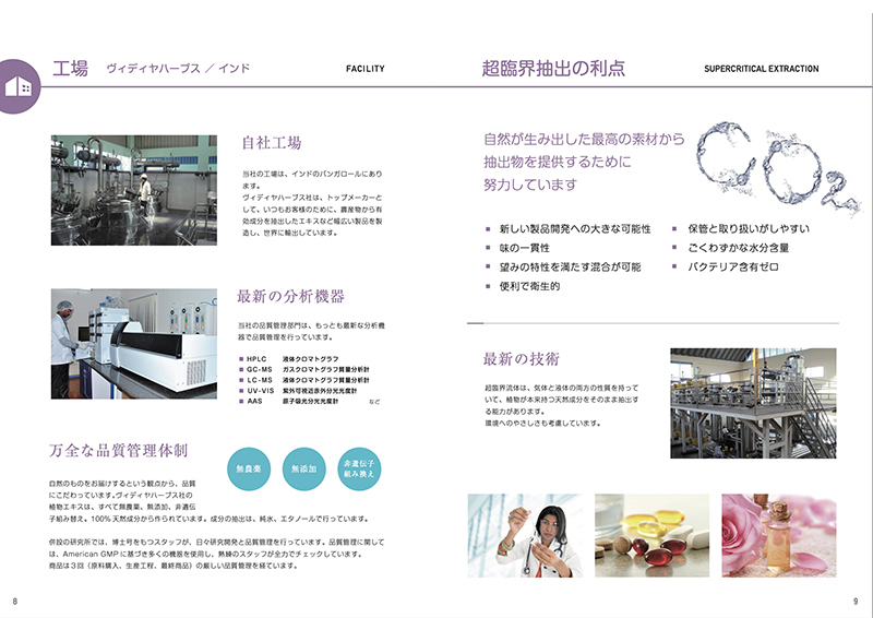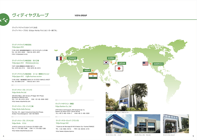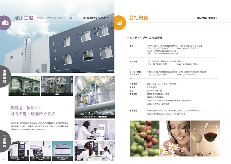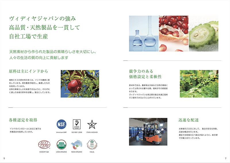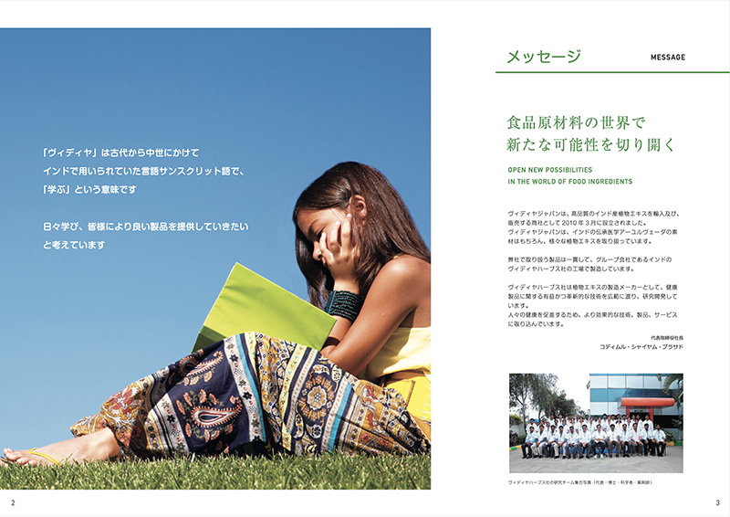 インド産植物エキスの輸入、製造販売をしておられるヴィディヤジャパン様の会社案内パンフレットを制作しました。